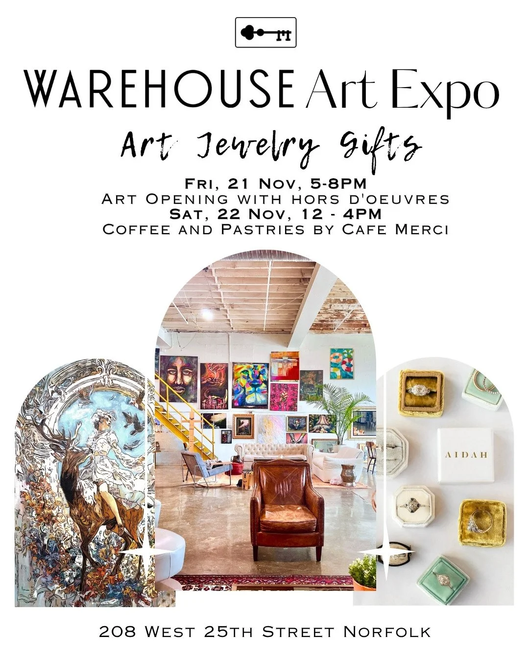 Kick off the Holiday Season at the WareHouse Art Expo!!! Featuring nine local artists showcasing their work. We open Friday Nov. 21st from 5pm-9pm with free Hors D’Oeuvors & Wine. The atmosphere will be festive and interactive with each artist on site to share the inspiration behind their unique creations. Original Work & Prints will be available for purchase.